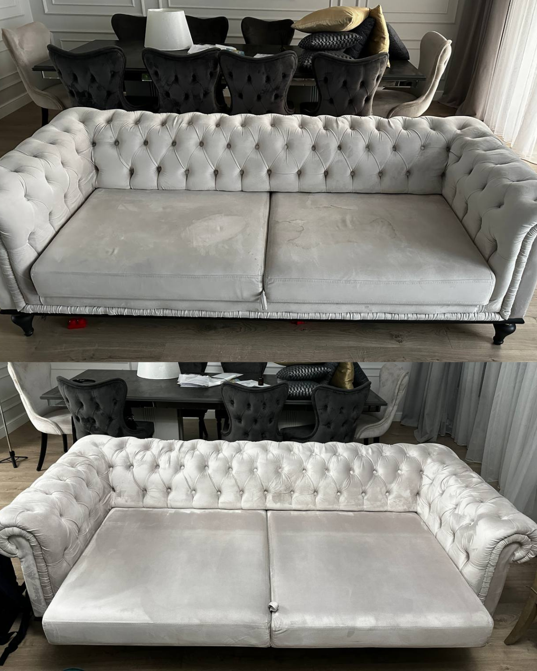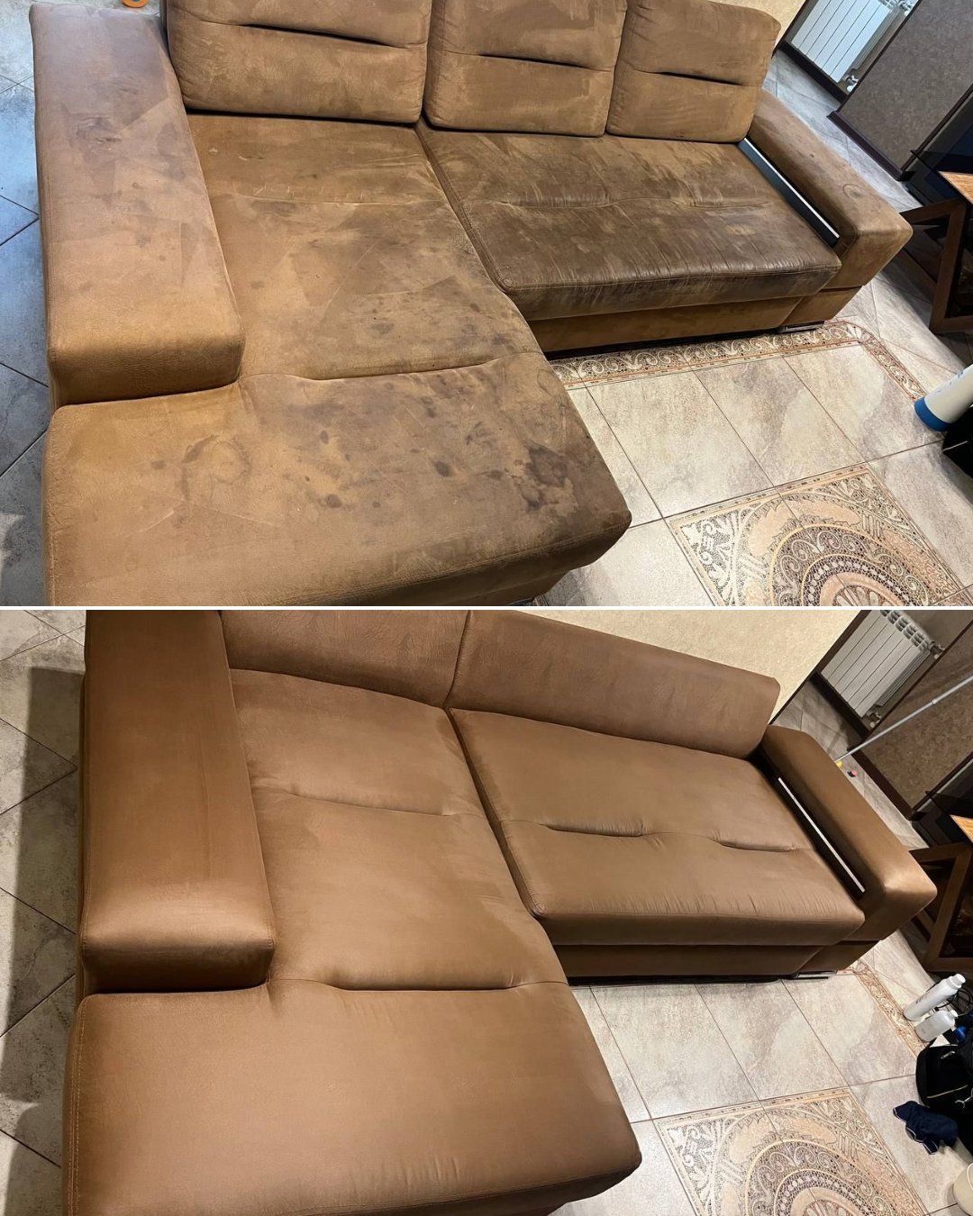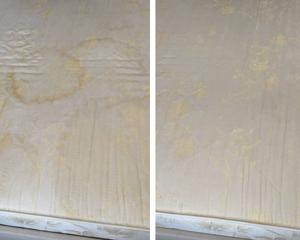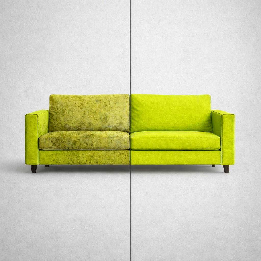 Мы честно оцениваем каждую ситуацию. Бытовые пятна — напитки, еда, пыль, следы от животных — обычно уходят полностью. Старые, въевшиеся или повреждающие пятна могут осветлиться , но не исчезнуть на 100%. Перед началом работы мы всегда проговариваем ожидаемый результат, чтобы не было сюрпризов.